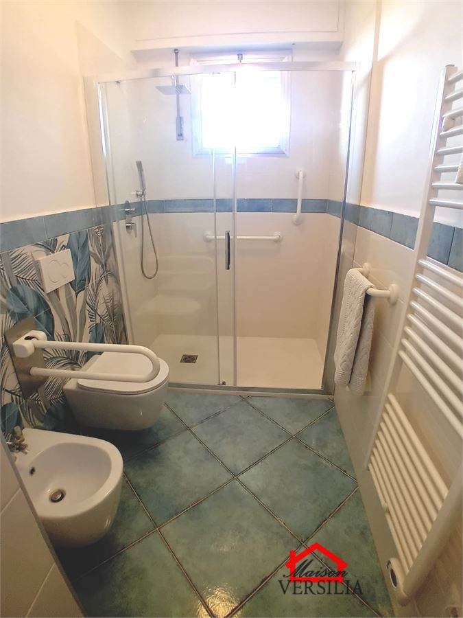 Suoi punti di maggior pregio sono la vicinanza al mare (90 m), piscina condominiale, posto auto e meravigliosa terrazza con vista mare e sulle Apuane.